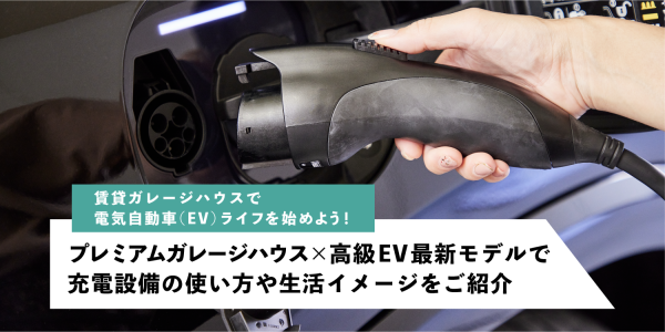 賃貸ガレージハウスで電気自動車(EV)ライフを始めよう!プレミアムガレージハウス×高級EV最新モデルで充電設備の使い方や生活イメージをご紹介