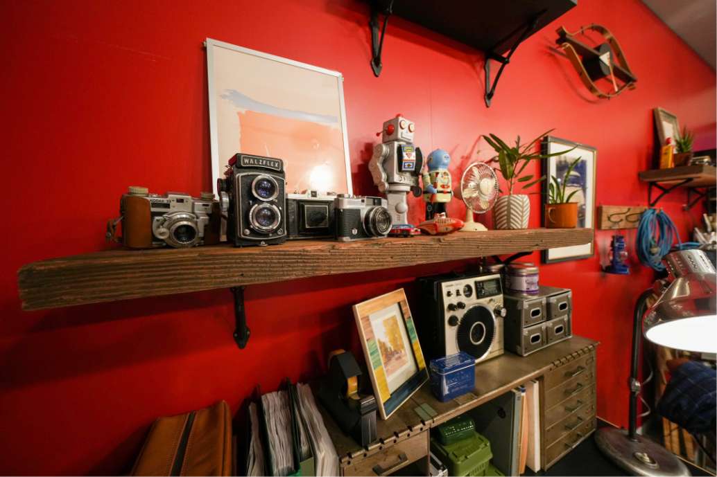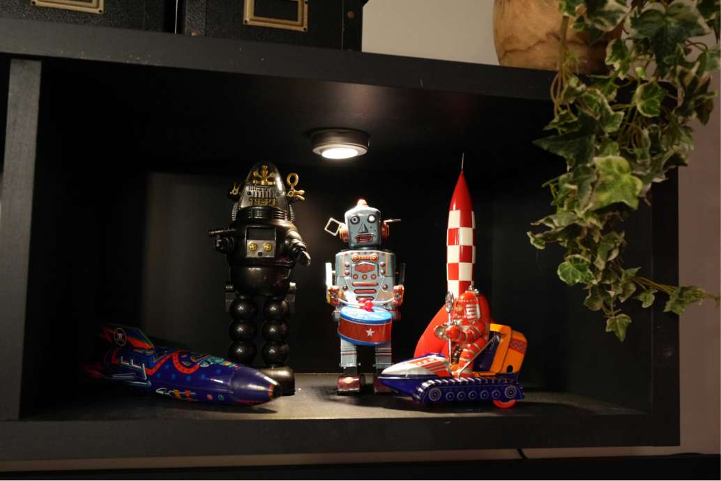 - 子どもの頃のおもちゃから、大人になるまで集めてきた車グッズまで、美しく、大切に飾っている。コレクションする楽しさがここにある。