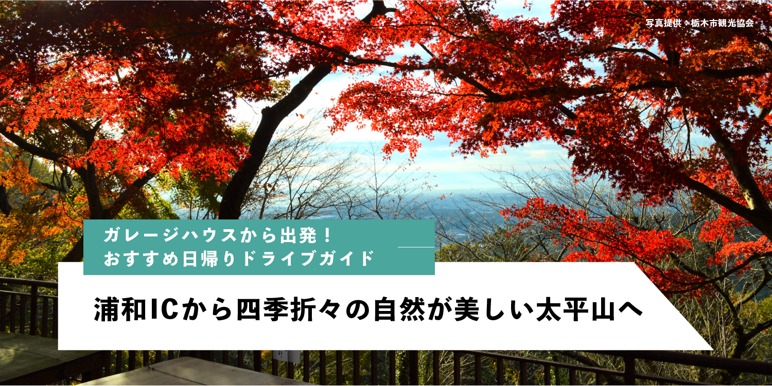 プレミアムガレージハウス浦和美園を出発し、目指すは栃木・太平山。目の前の道をまっすぐ進むと約7分ほどで浦和ICに到着。ゲートをくぐって東北自動車道で栃木方面を目指します。颯爽と車を走らせ、高速ドライブを楽しんでいるうちに、あっという間に太平山最寄りの佐野藤岡インターチェンジに着きました。