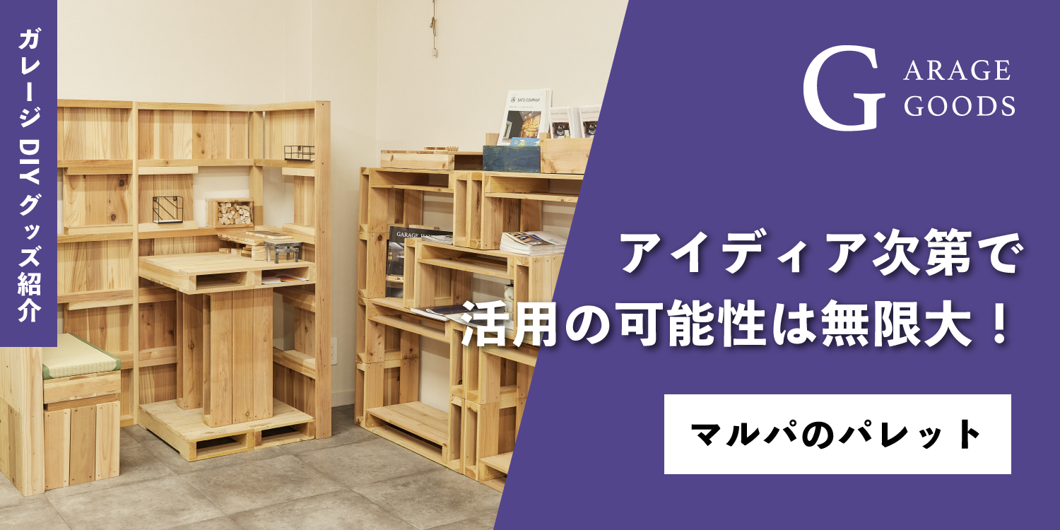 プレミアムガレージハウスでは、契約時はスケルトンでの引渡しとなるので、空間そのものを自分流にアレンジ可能。ぜひマルパのパレットやパレット家具を使って自分好みの空間にアレンジしてみてはいかがでしょうか。