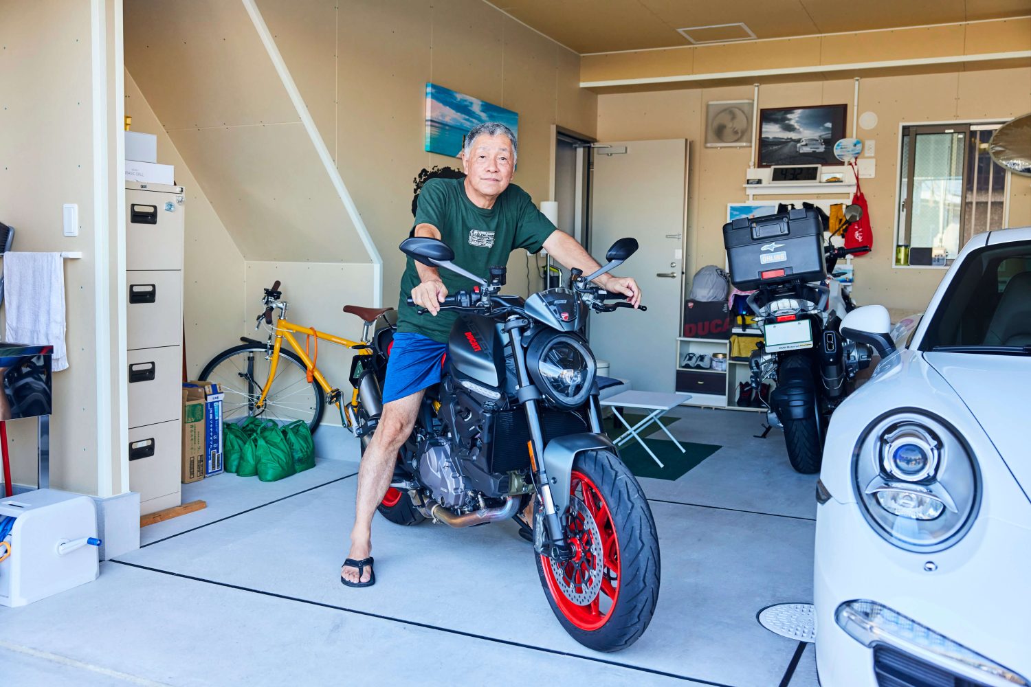 「スペースに余裕があるから、1台で我慢しないで、2台、3台と増やしていけるのは、広々としたガレージスペースのあるプレミアムガレージハウスならでは。BMWは長距離バイクなので、遠出しますね。仲間と“ちょっと青森の大間まで行こうか”って長距離ツーリングしたり。タンデムで奥さんを乗せて、北海道や九州や四国まで旅行に出かけることもあります。ドゥカティは近場で、ストレス解消に峠を走りに行ったりします。複数台を使い分けながら思いっきり趣味を楽しんでいます。プレミアムガレージハウスは、セキュリティがしっかりしているのも安心ですね。とてもじゃないけど、こういったバイクや車を屋外の雨ざらしには置いておけないので」