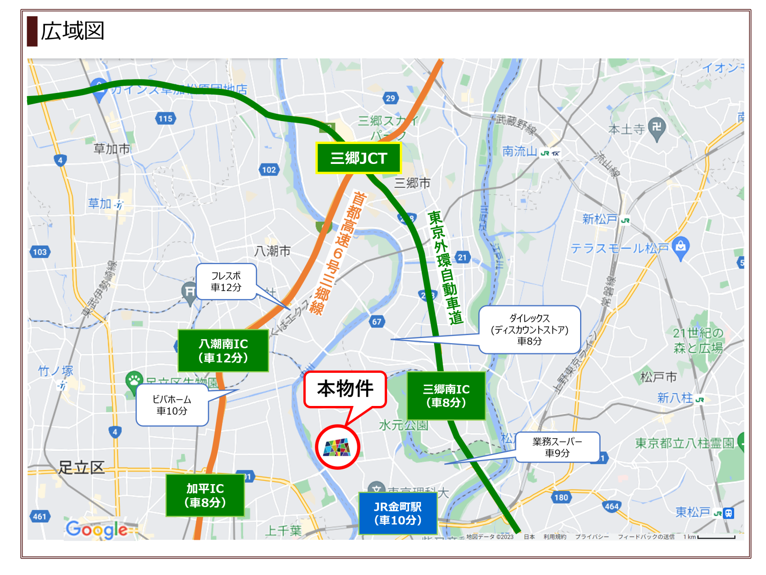 首都高速6号三郷線「加平IC」入口まで3.6km(車で8分)