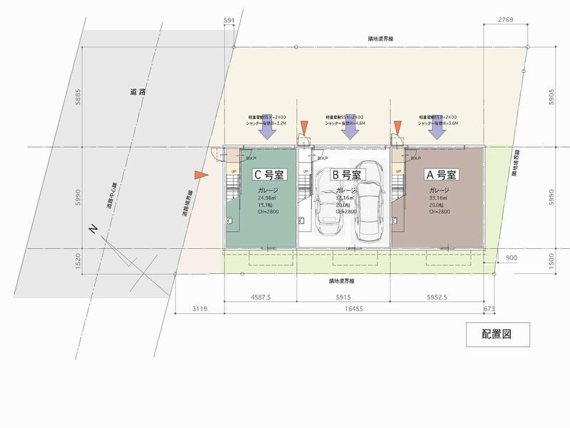 幅約4.2m×奥行約5.8m(シャッター開口部:約3.2m×高さ約2.4m)