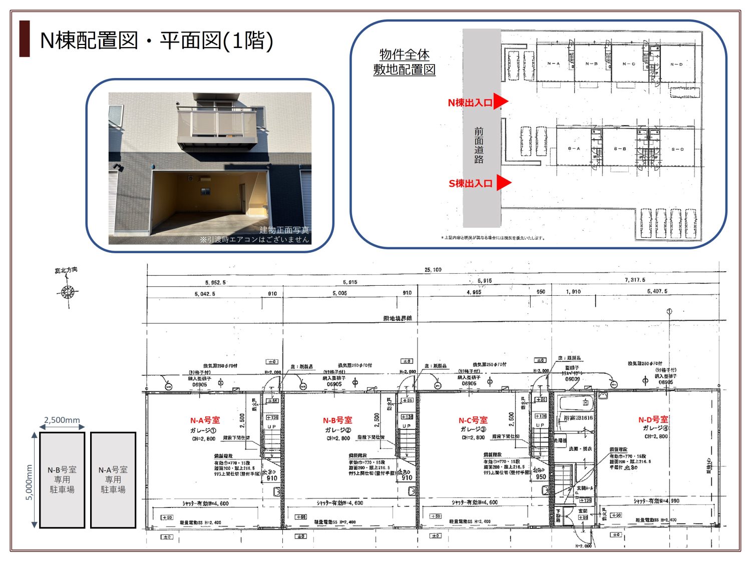 ガレージ+1R~1LDKの居住スペース+屋外専用駐車場(車1~2台分)