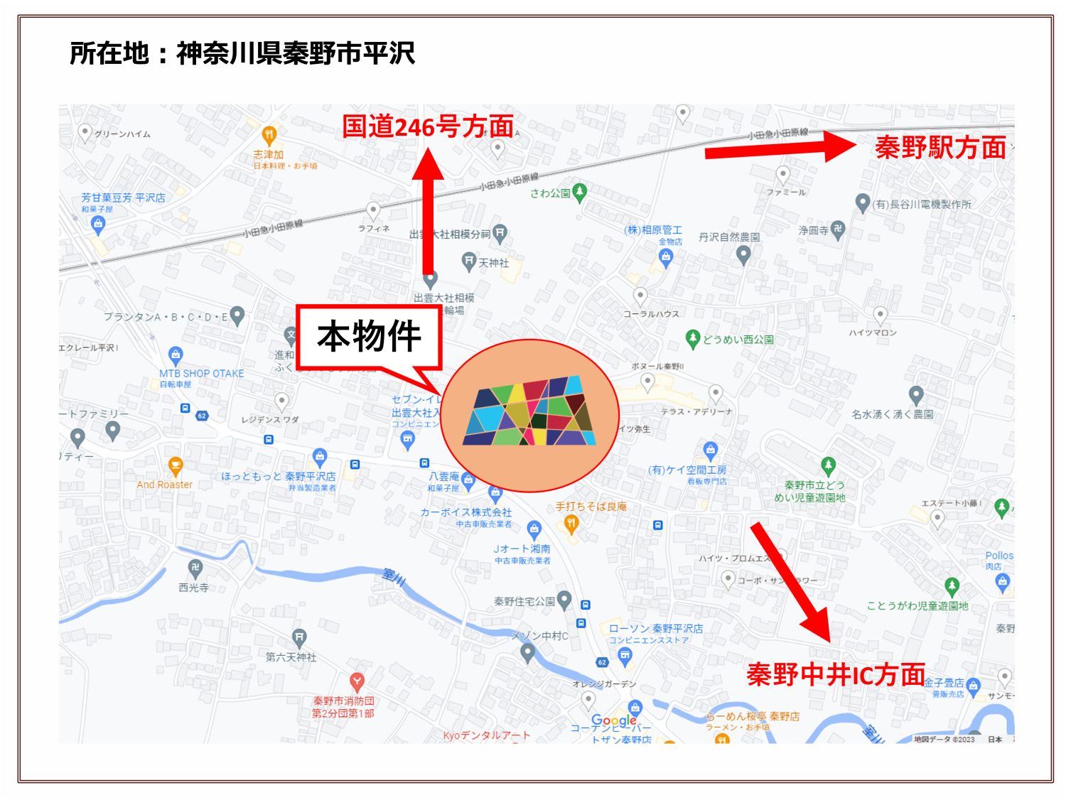 小田急小田原線「秦野駅」まで1.8km(徒歩23分)