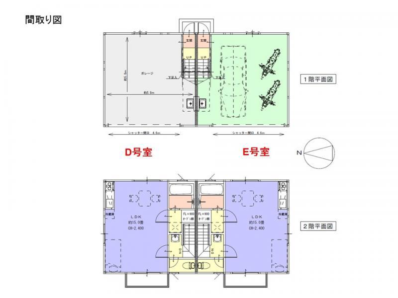 - ・車2台用大型ガレージ