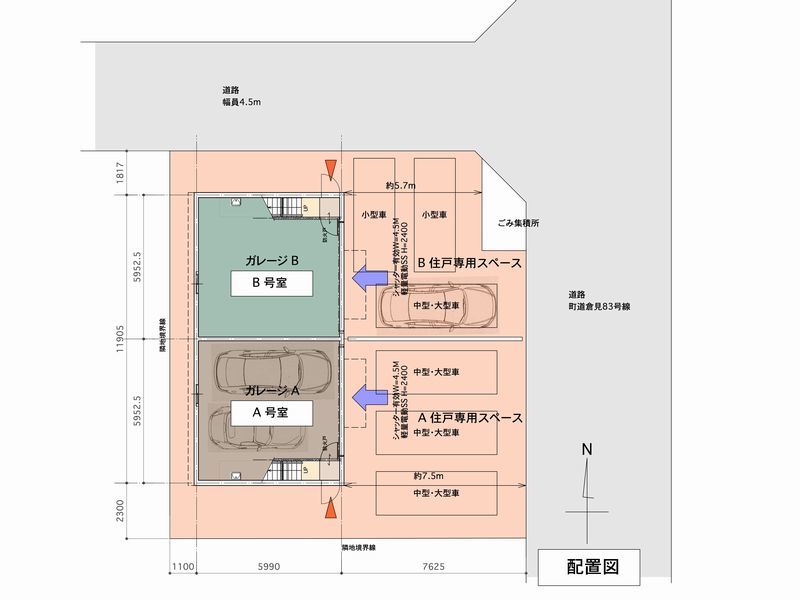- ・大型ワンルーム+大型ガレージ+屋外3台分の専用駐車スペース