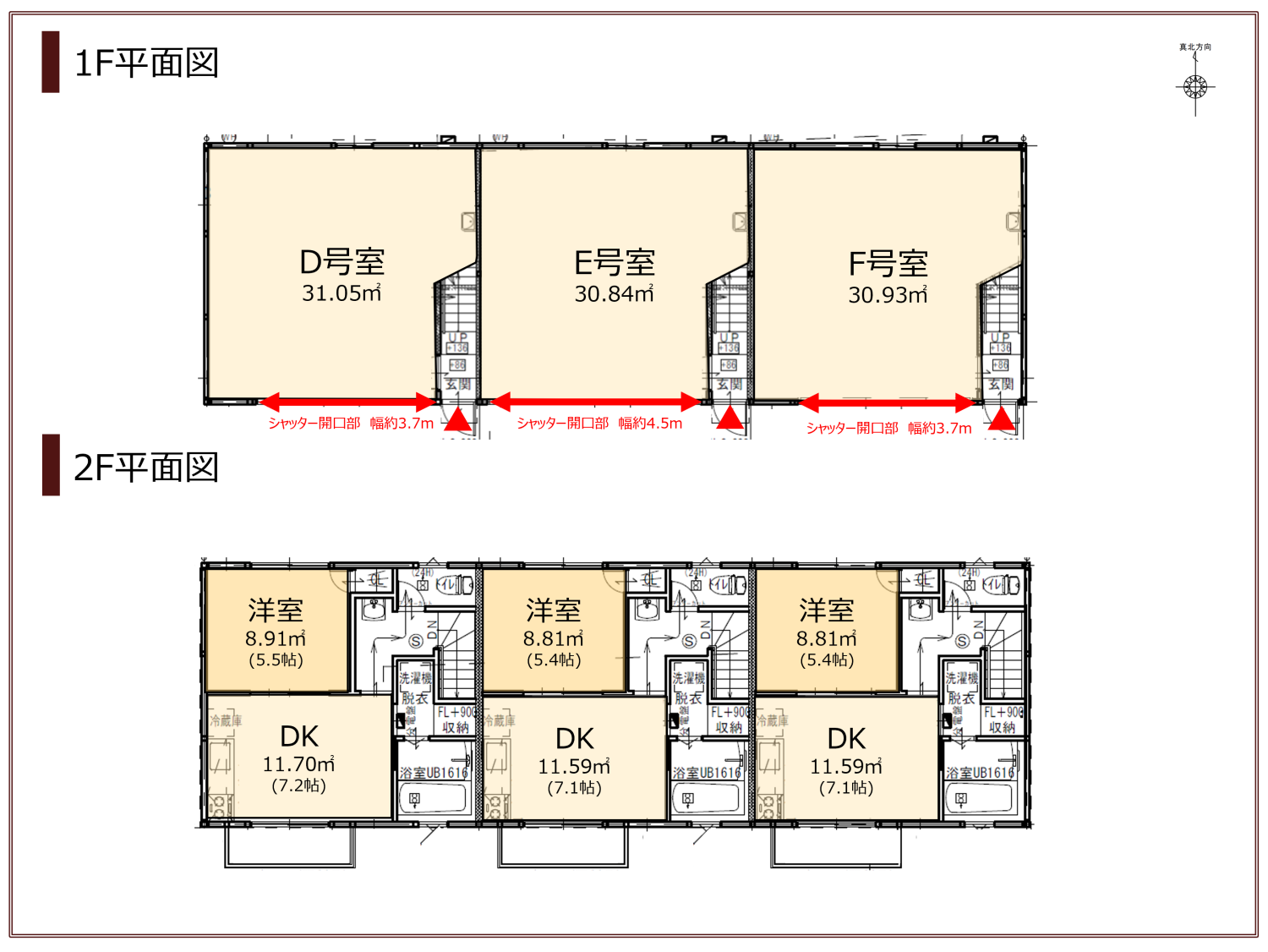 シャッター開口部 幅約3.7m×高さ約2.4m (D・F号室)