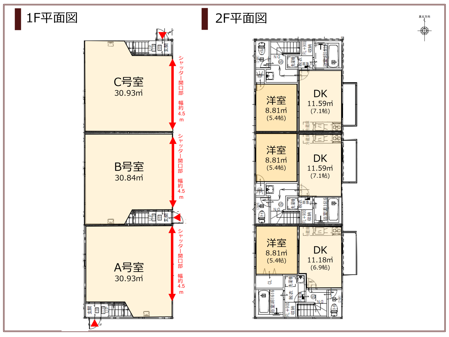 シャッター開口部 幅約4.5m×高さ約2.4m(A・B・C・E号室)