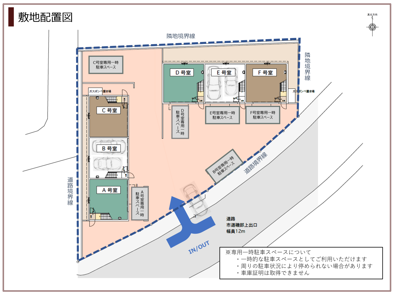 車2台分収容可能ガレージ+1DKの居住スペース+屋外専用一時駐車スペース(車1台分)