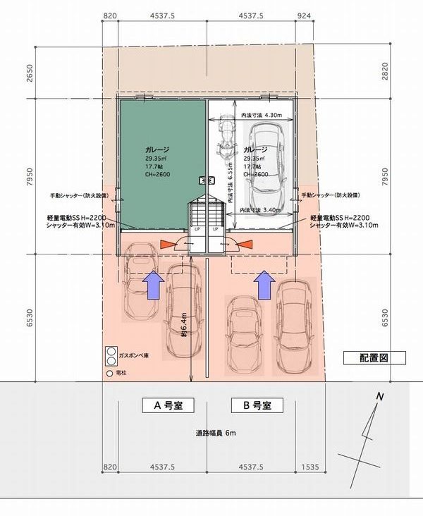 - ガレージ:幅約3.4m~約4.3m、奥行約6.5m