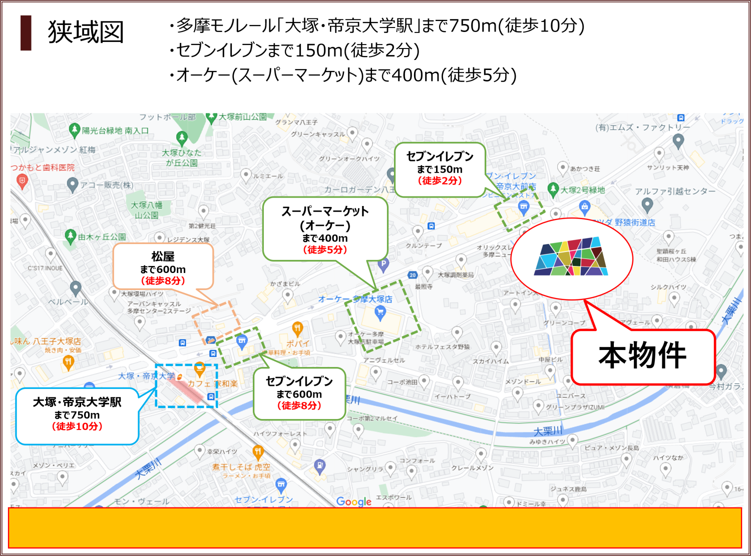 多摩モノレール「大塚・帝京大学駅」まで750m(徒歩10分)