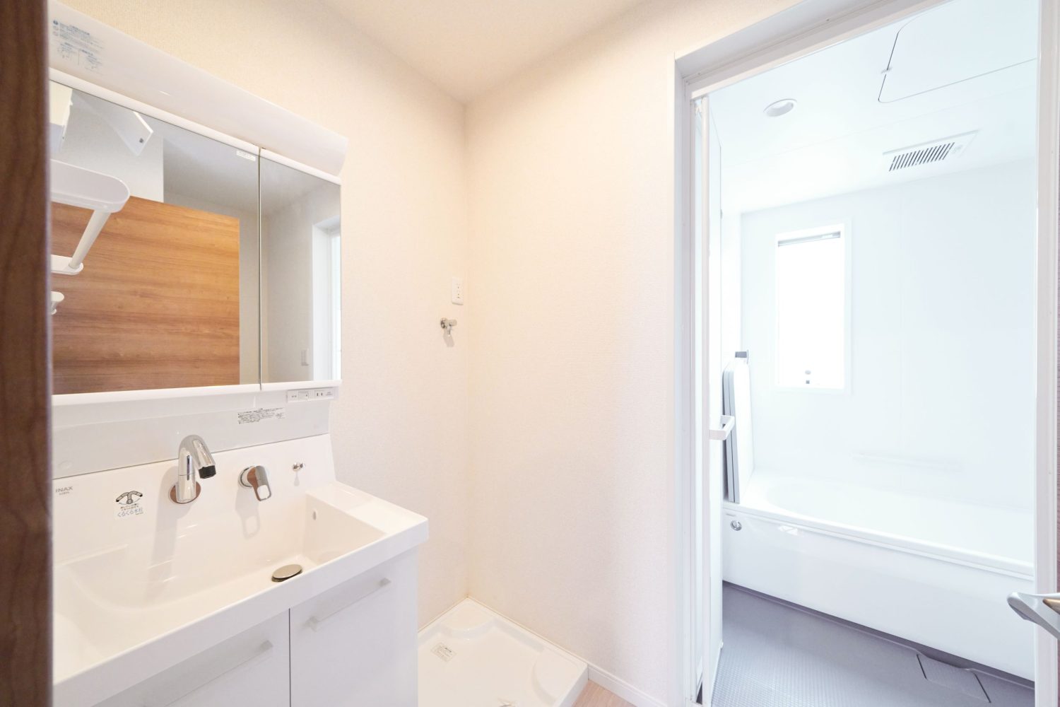 ユニットバス(追焚き機能付・1616サイズ)、独立洗面化粧台、トイレ(温水洗浄便座付)、システムキッチン