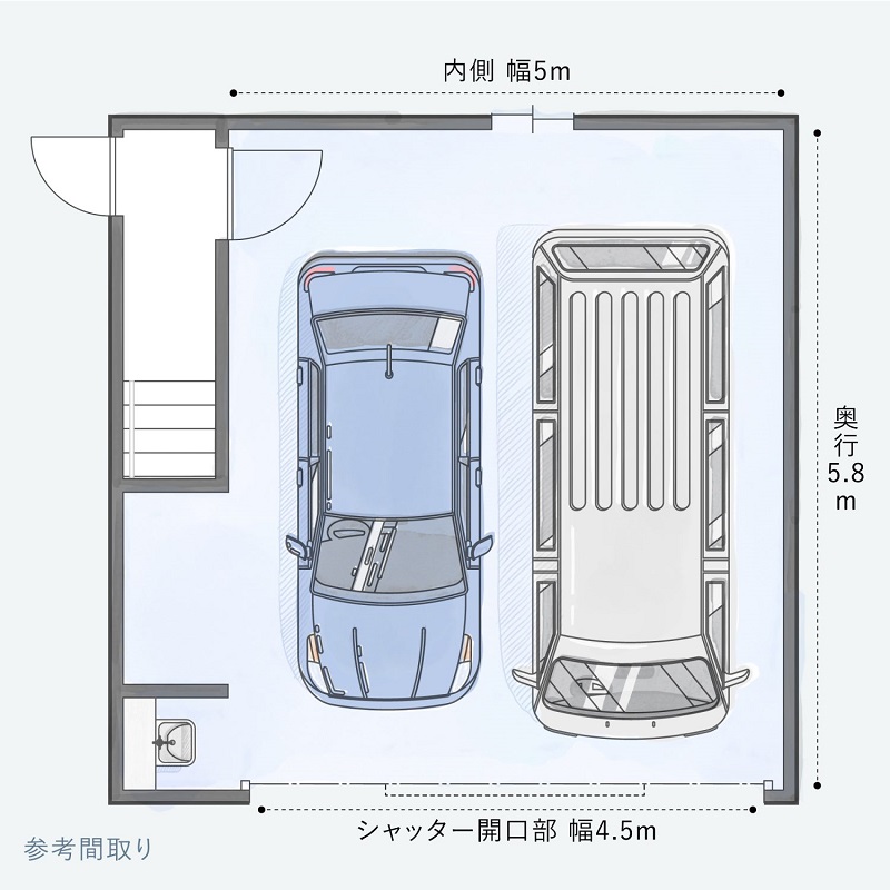 - ガレージ 幅芯々約5.0m×奥行芯々約5.9m