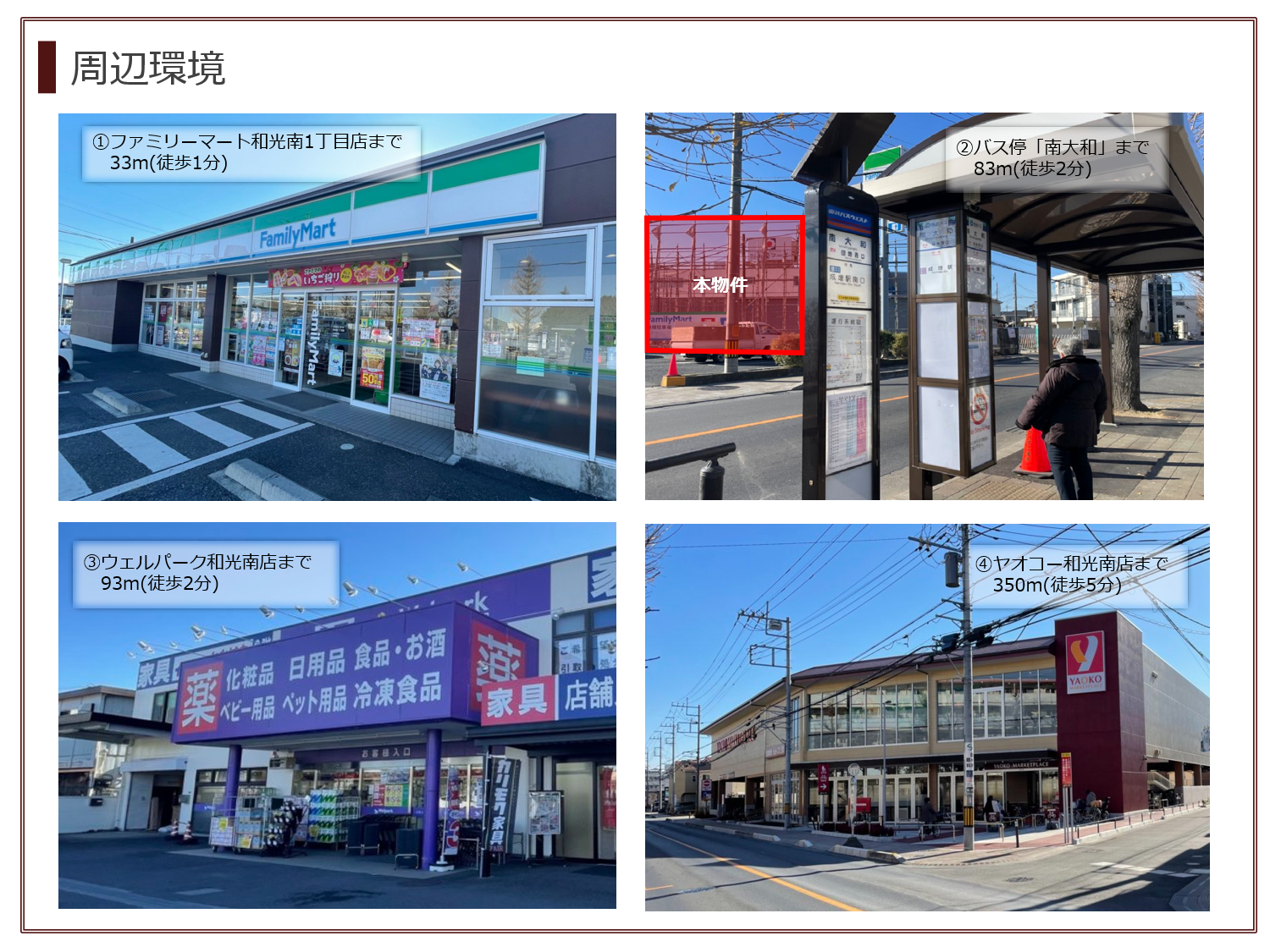 最寄りバス停「南大和」から東武東上線「成増駅」/東京メトロ有楽町線・副都心線「地下鉄成増駅」まで西武バス・東武バス「成増駅南口行」で約15分(徒歩29分)