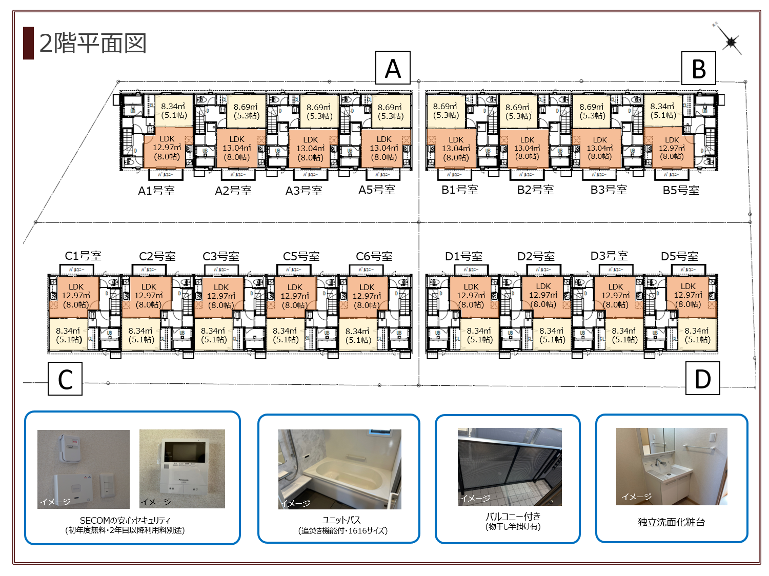 - 【A1・B5・C1~C6・D1~D5号室】 69.97㎡(うち車庫31.80㎡含む)