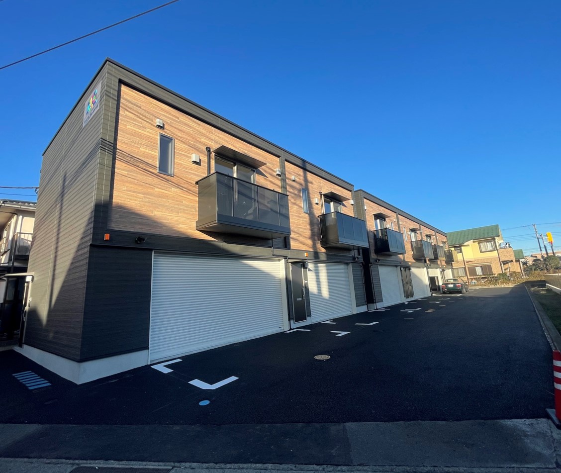 B・C・D・E・F号室 車2台分収容可能ガレージ+1LDKの居住スペース+屋外専用一時駐車スペース(車1台分)