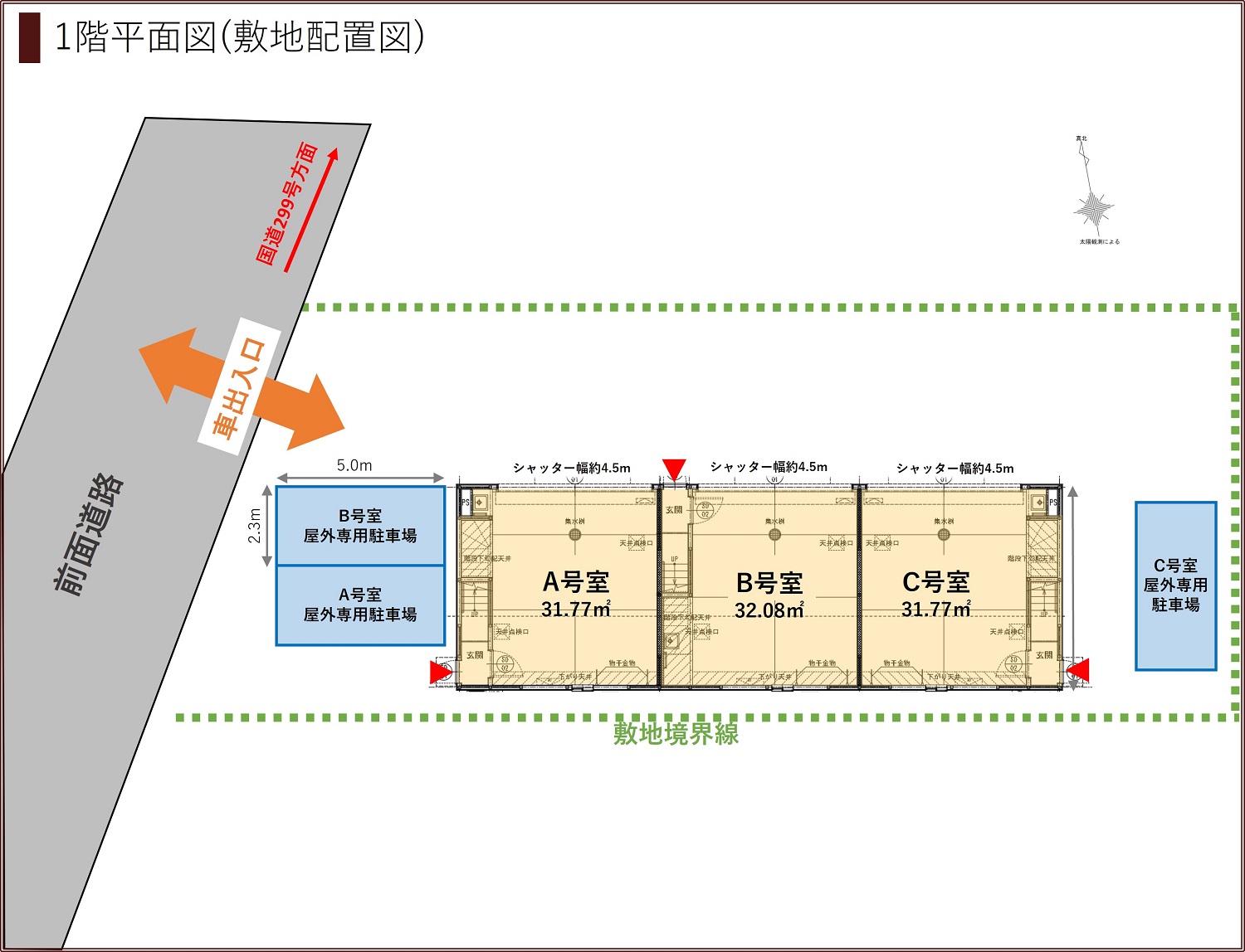 シャッター開口部 幅約4.5m×高さ約2.3m