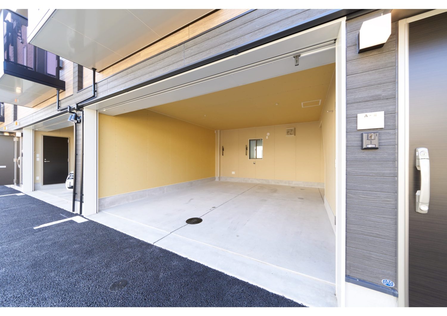 - 幅 約5.0m×奥行き約5.9mシャッター開口部 幅 約4.18m×高さ 約2.3m電動リモコンシャッター付、ガレージ内水道(給湯)完備